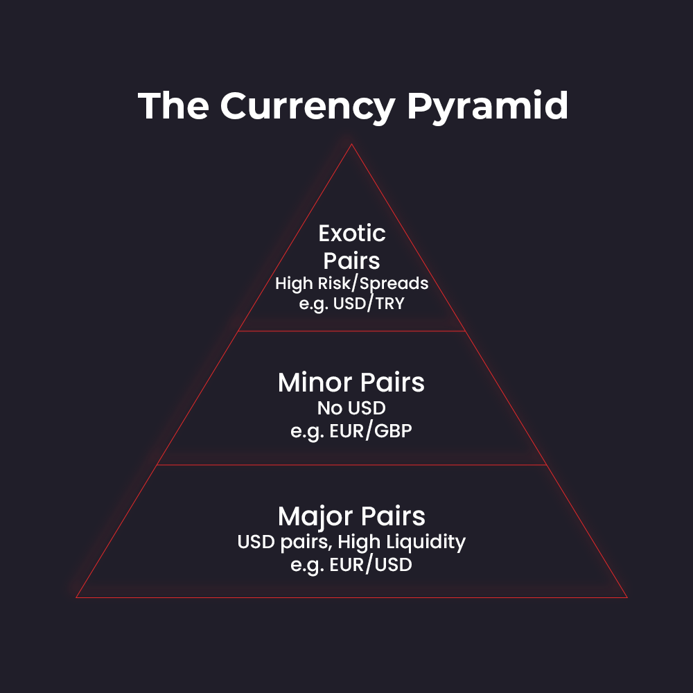 Liquidity: Major pairs have the highest liquidity, followed by minors, while exotics have the lowest.