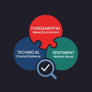 Fundamental analysis examines economic data, geopolitical events, interest rates, and global financial conditions. Markets move based on real-world events, especially: